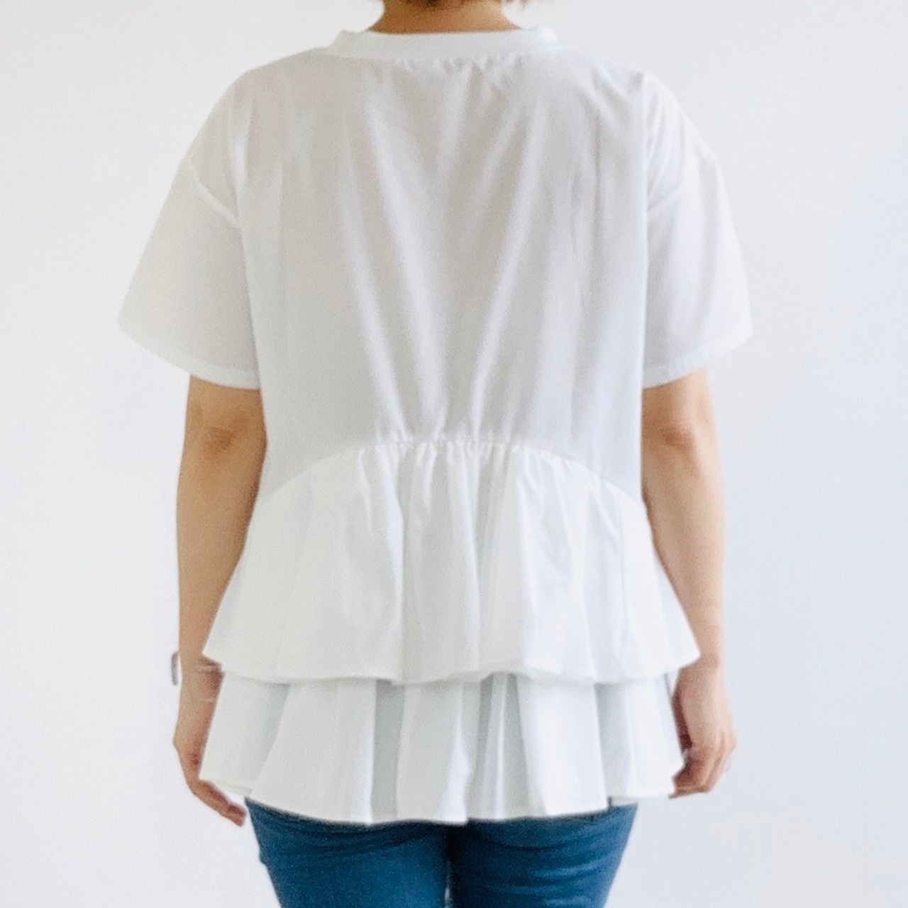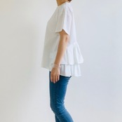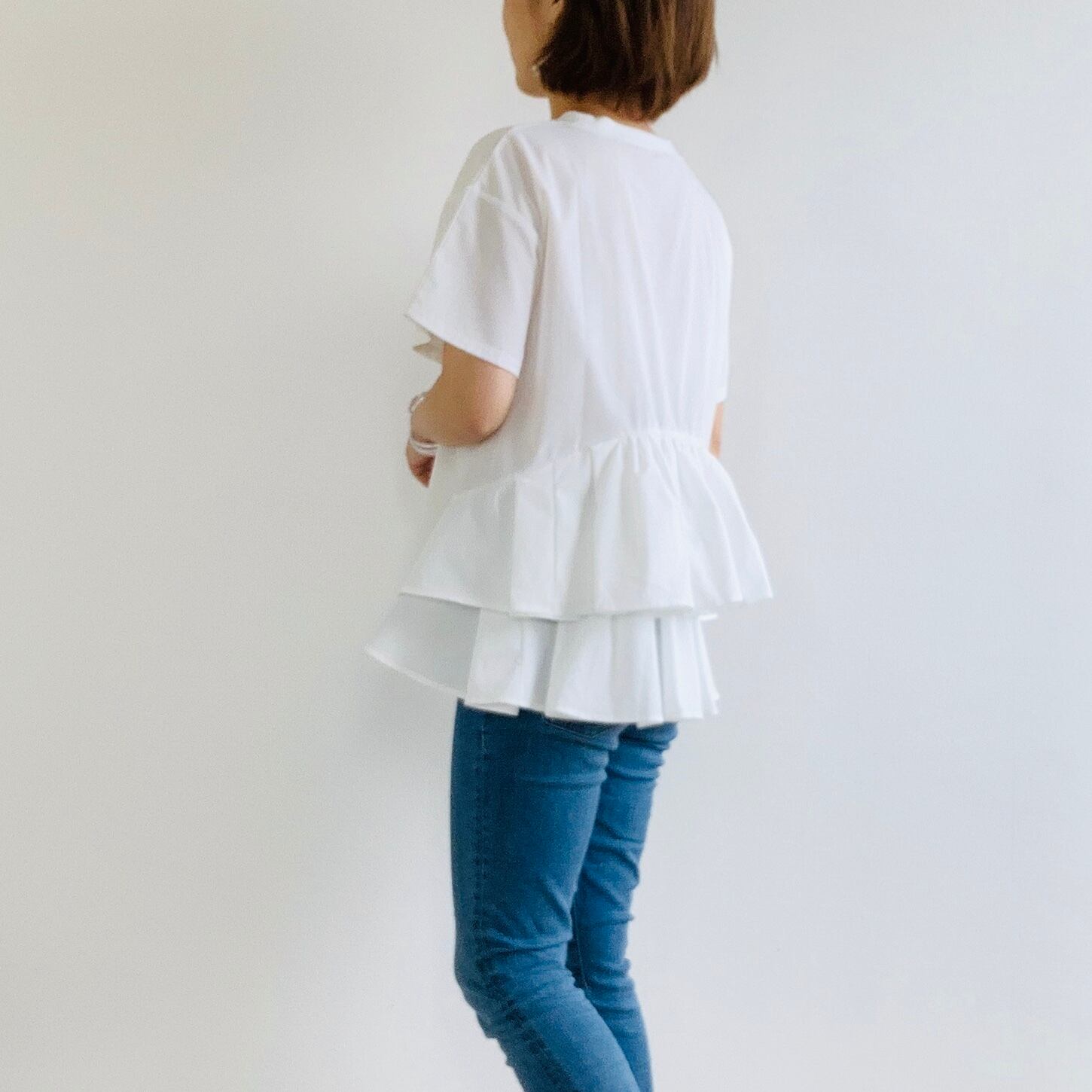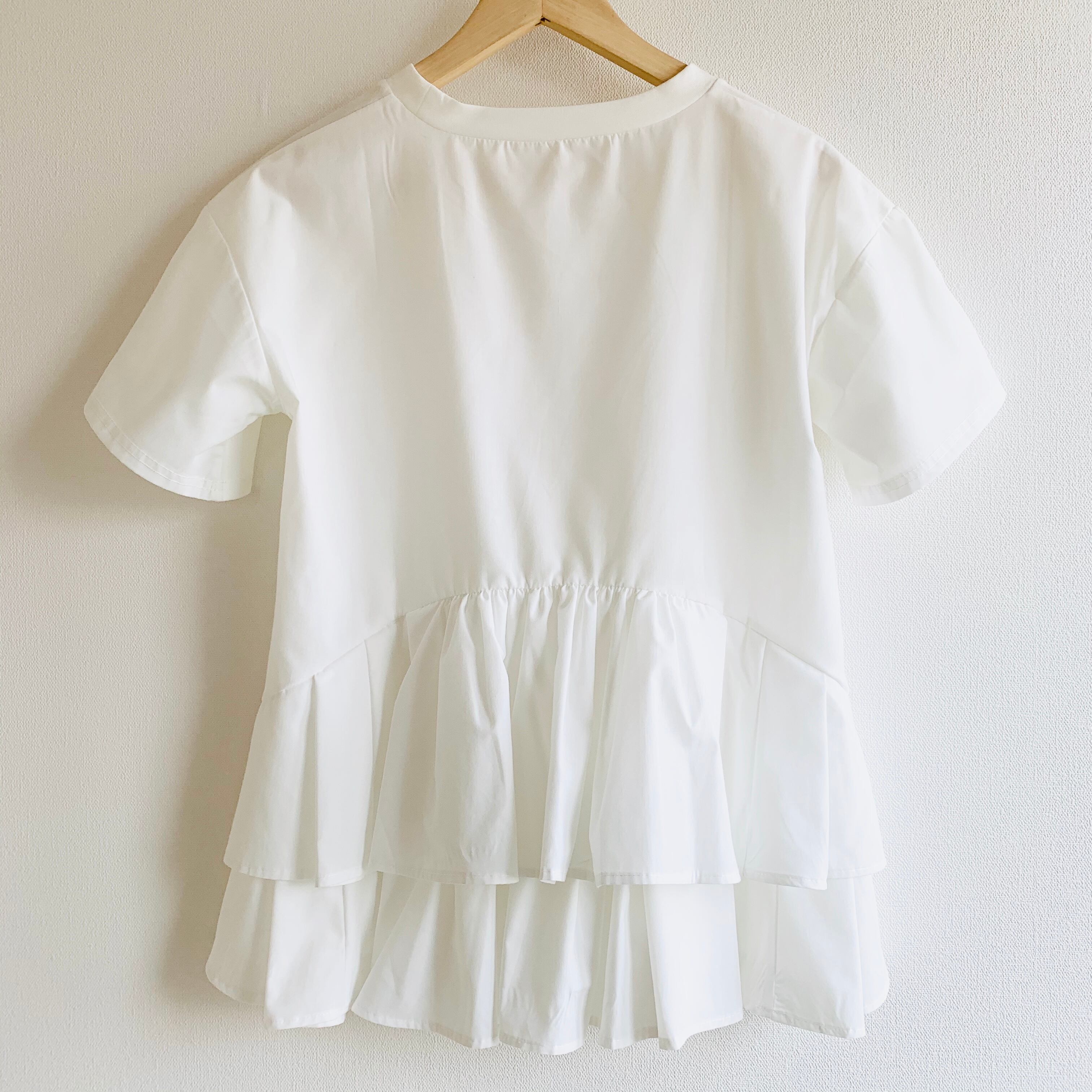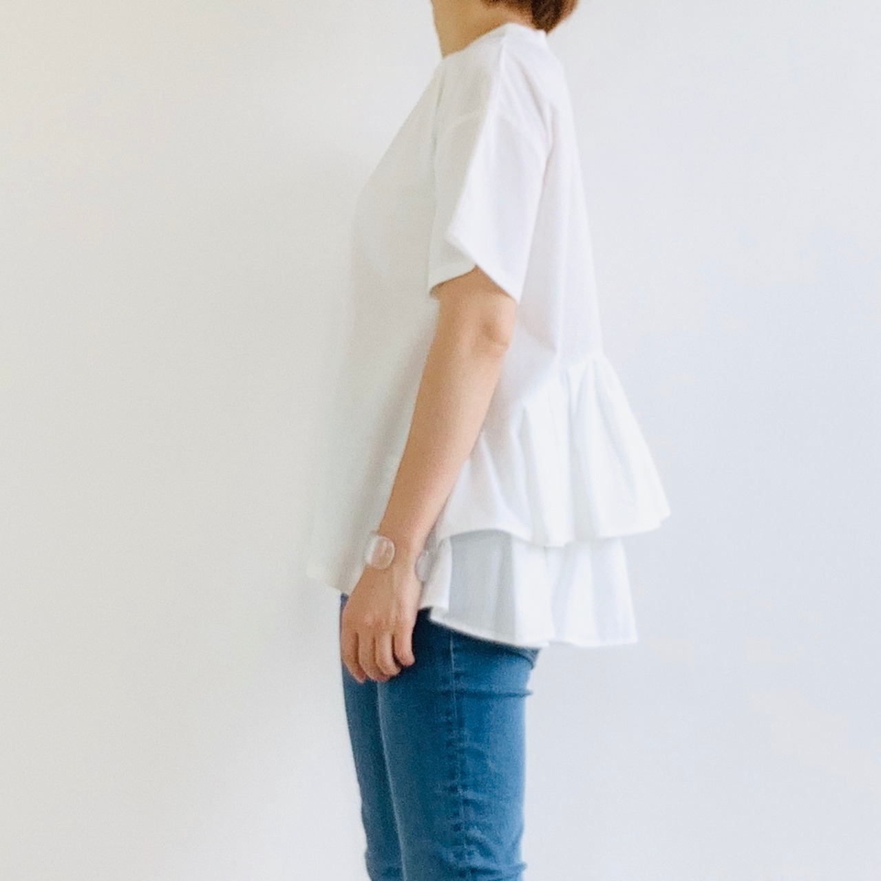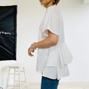 前見頃はカットソー素材、後ろ身頃がシャツ地、という切り替えが特徴。