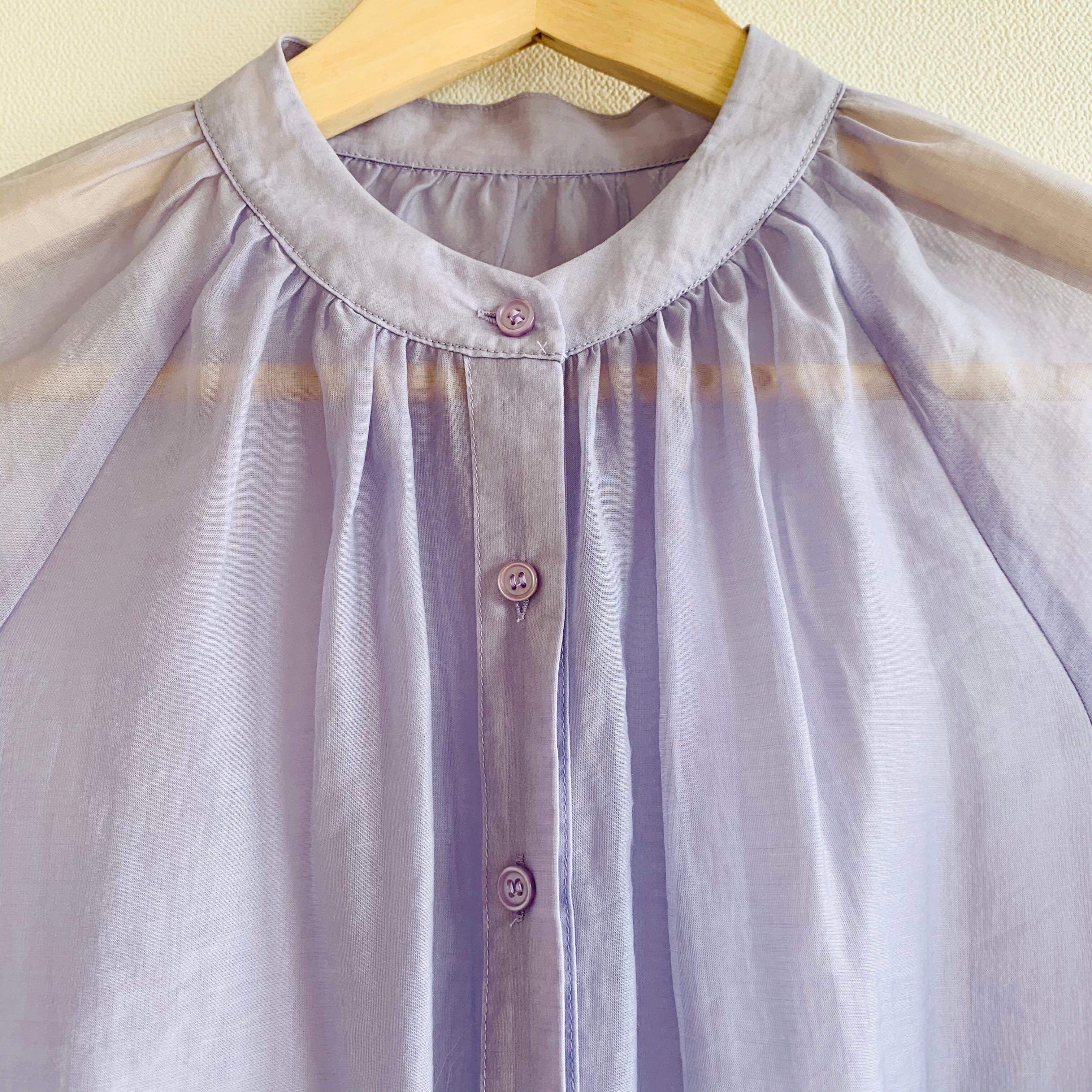 (インナーとボトムは、このラベンダー色を生かすために明るい色を合わせると良いでしょう。黒などの濃い色を合わせると、パステルカラーの優しい持ち味や、この素材感の良さが見えにくくなります。デニムで合わせる場合には、インナーを白にするとよくまとまります。)