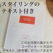 すべてのお洋服に「スタイリングのテキスト」が付いています。例えば「このようなパンツには合う、合わない」「このような色合わせが合う、合わない」というように、このお洋服を最大限お楽しみいただくための参考書です。