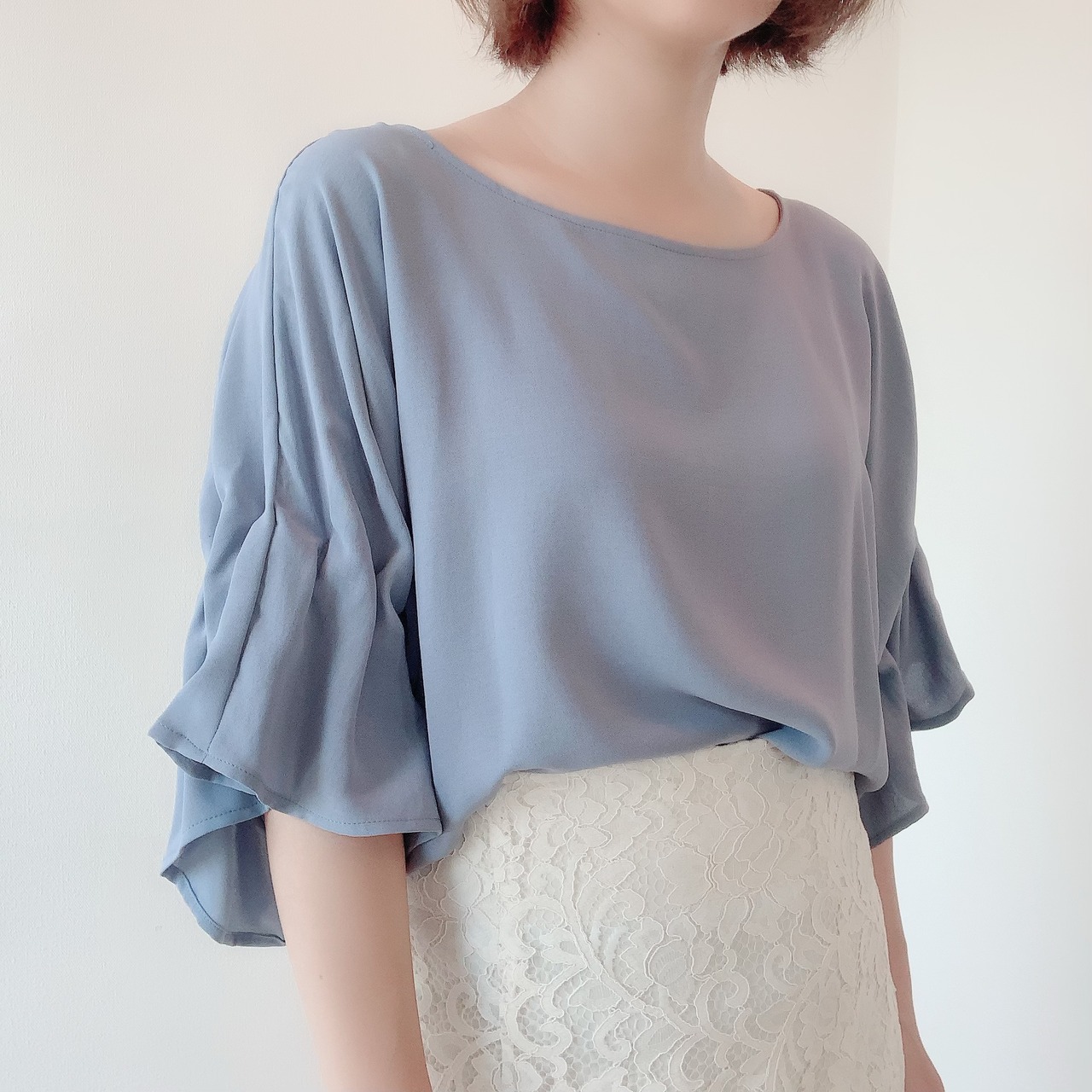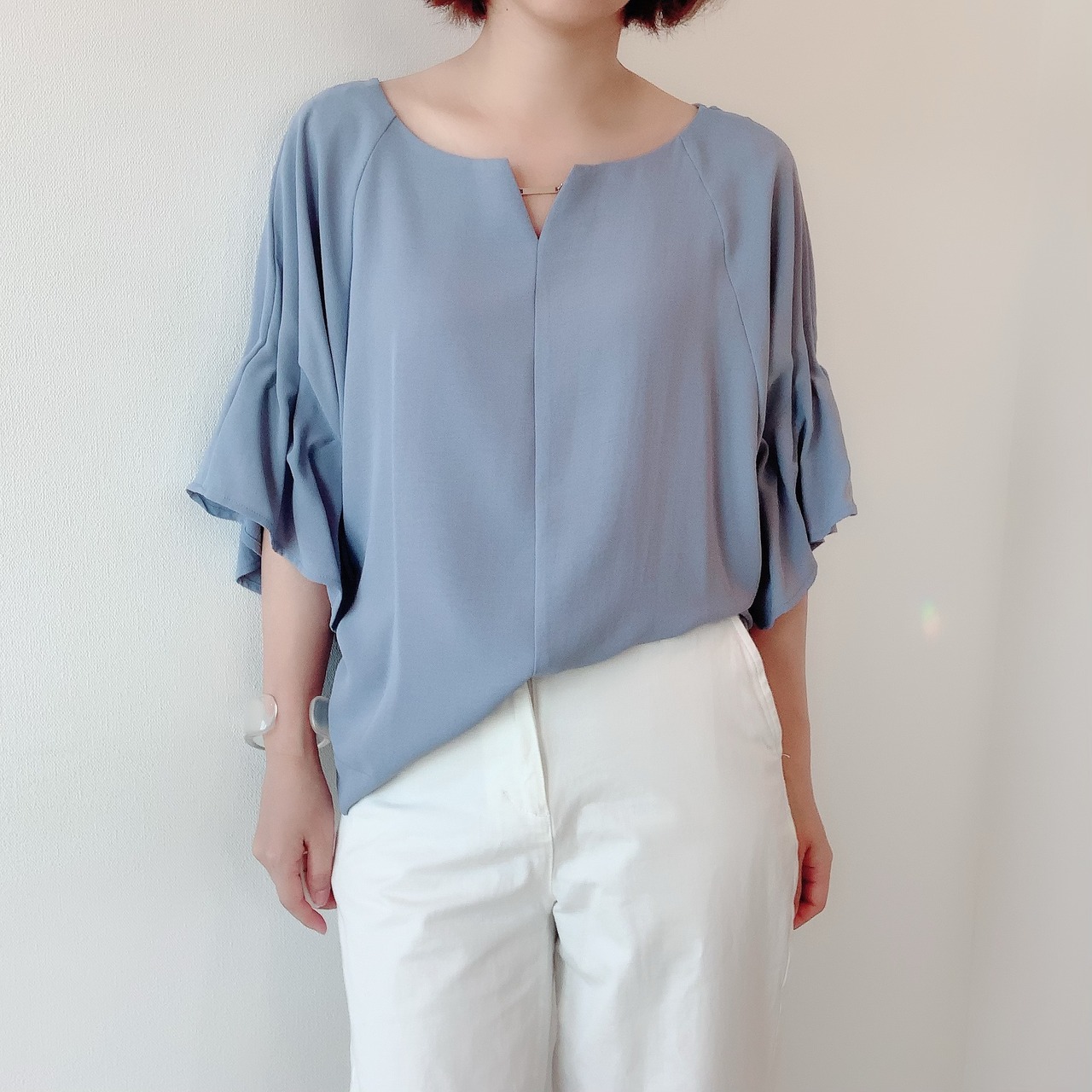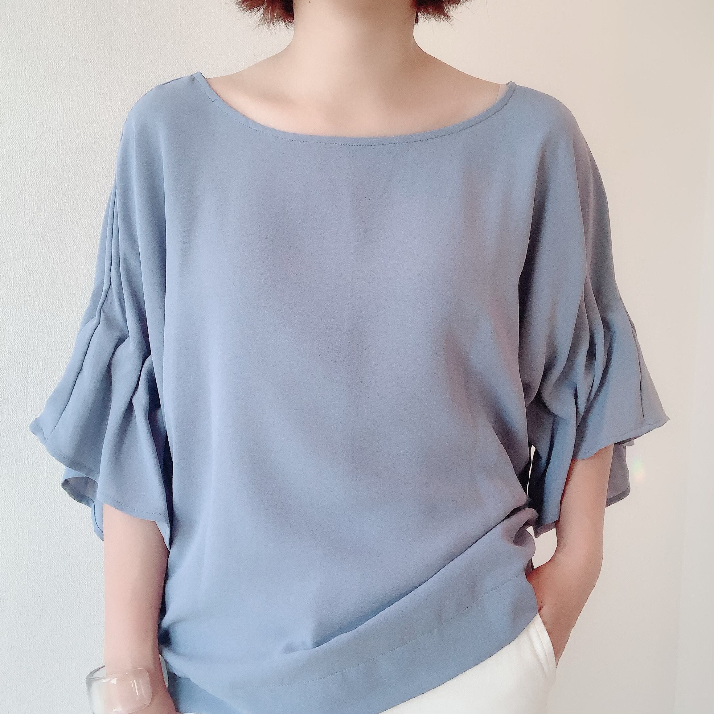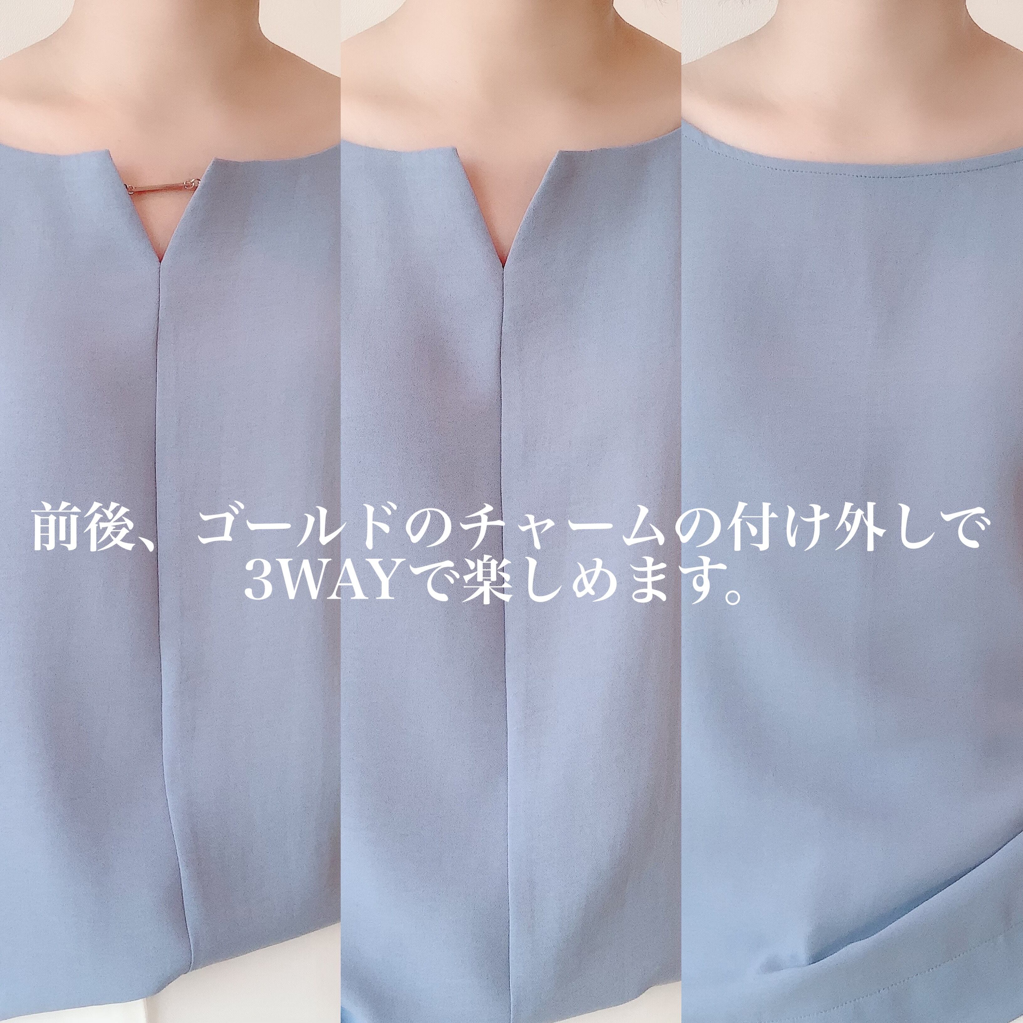 前も後ろも綺麗に着こなせる3WAY美シルエットプルオーバー(サックスブルー)