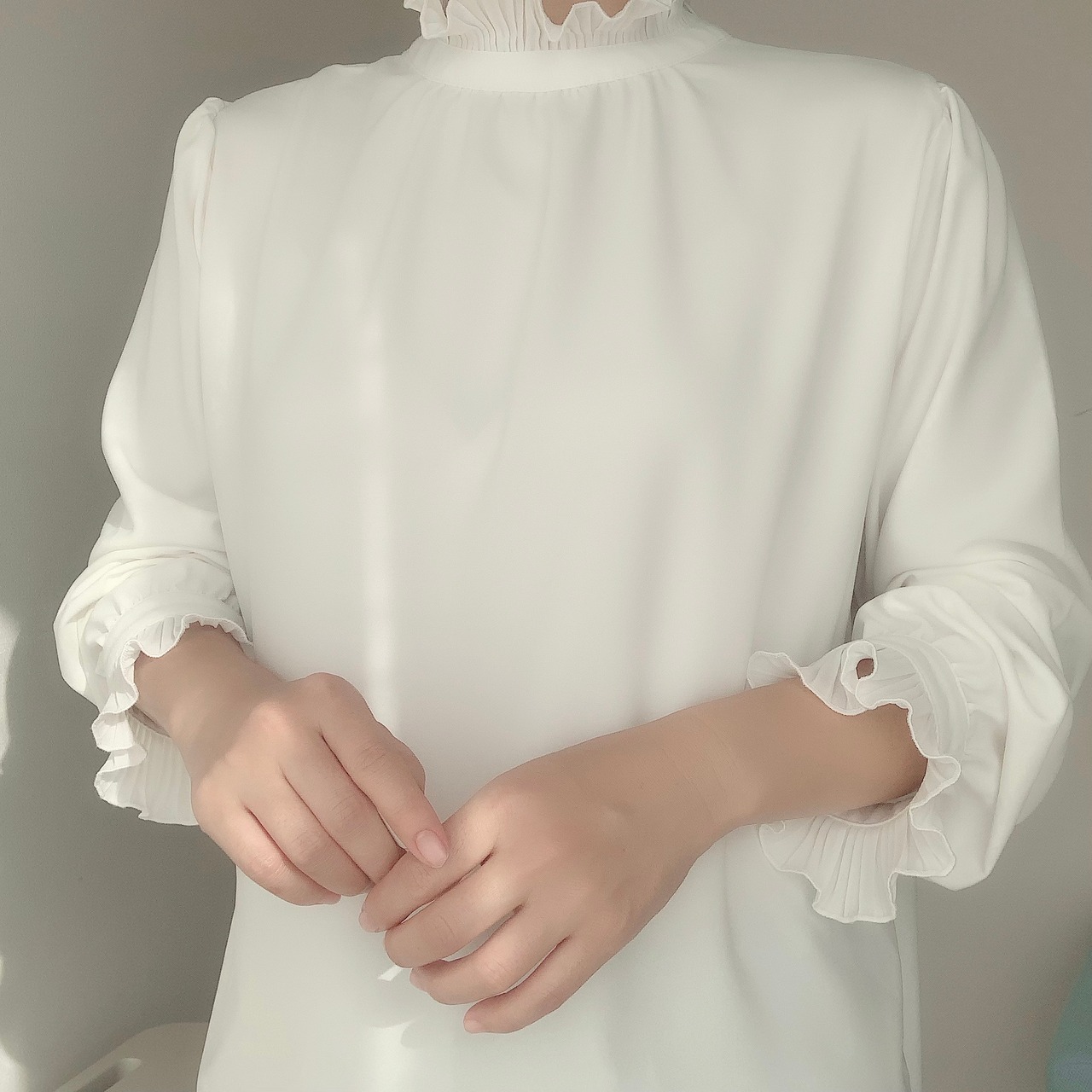 【完売しました】フロント、バッグ、どちらでも着られる、さらりと気持ちいいフリルブラウス