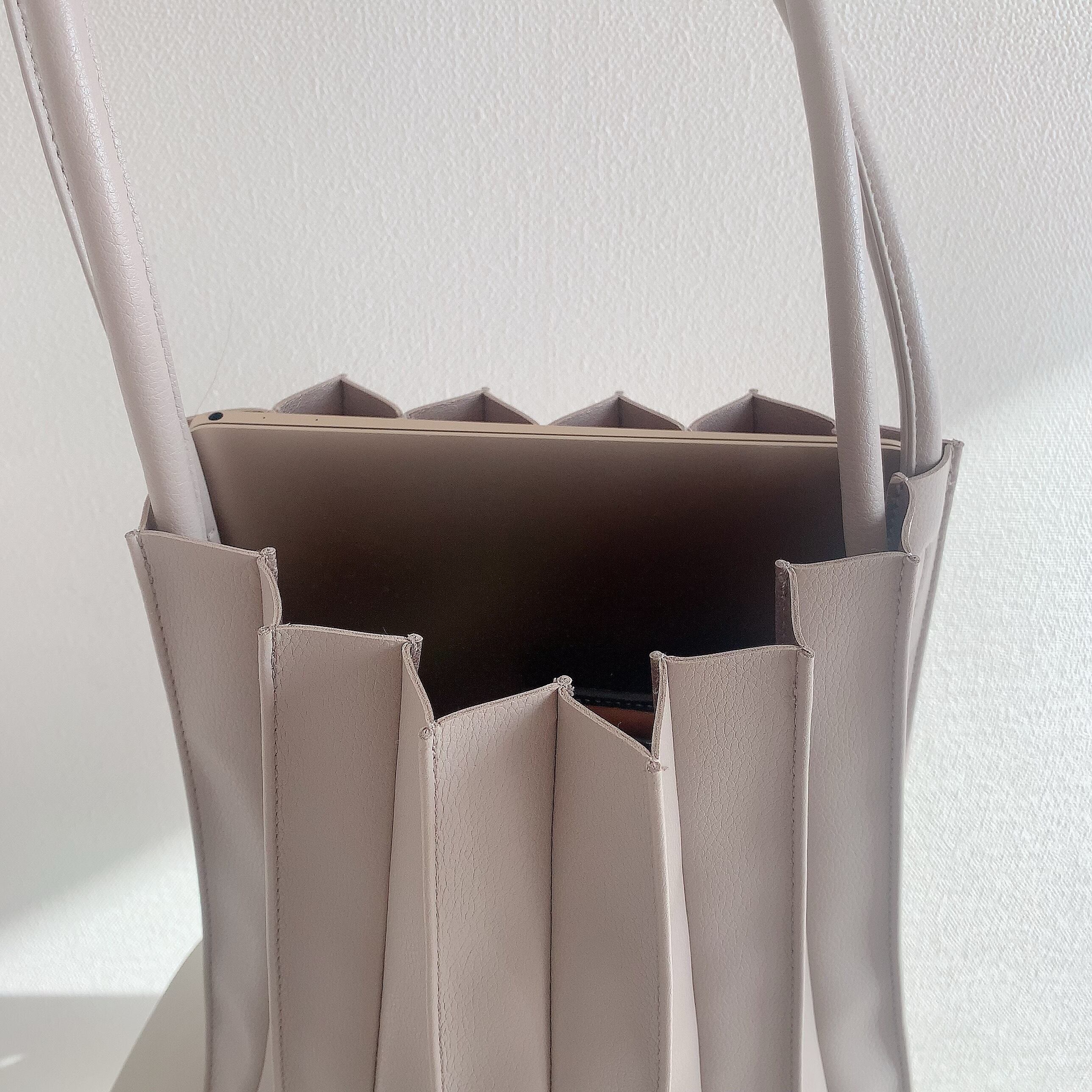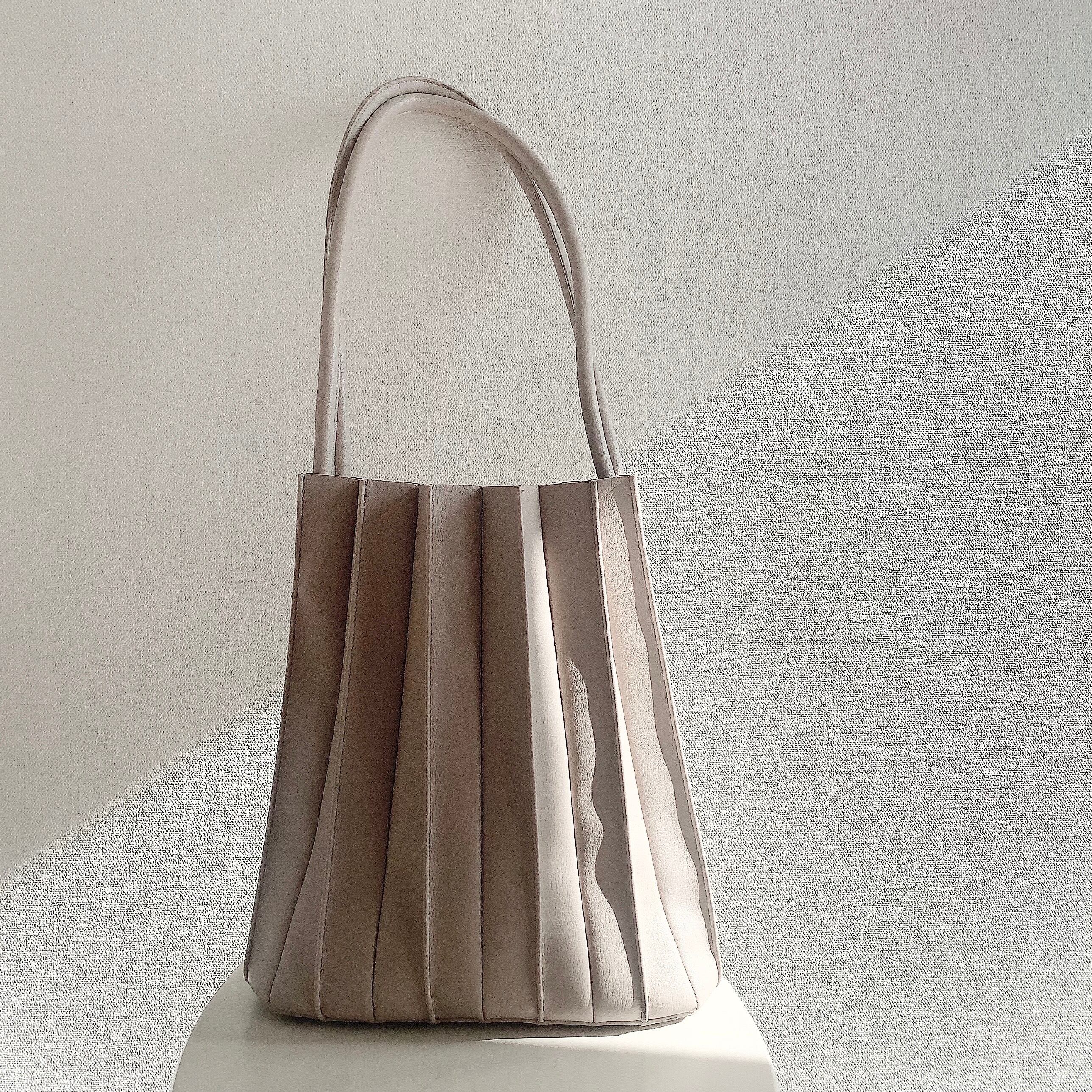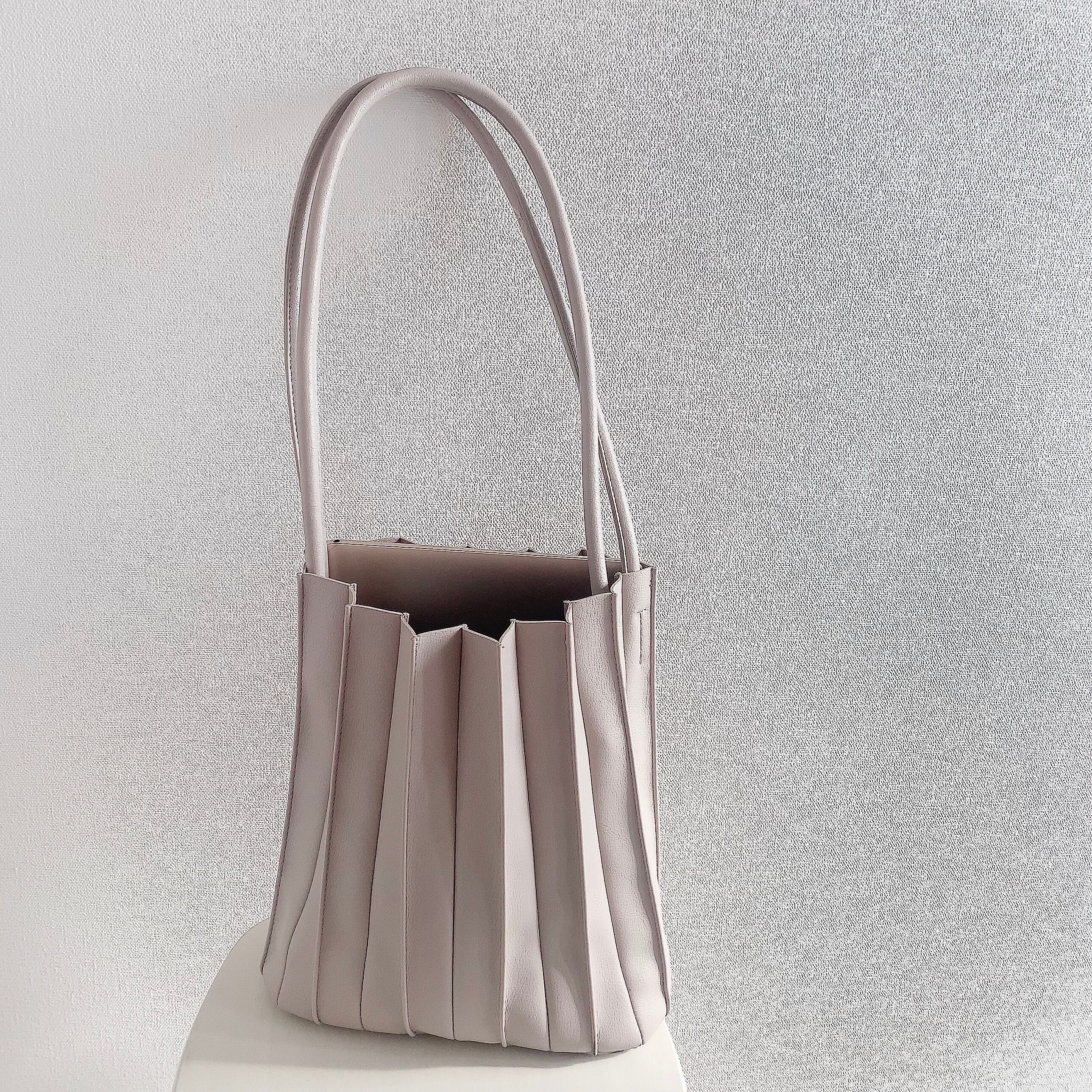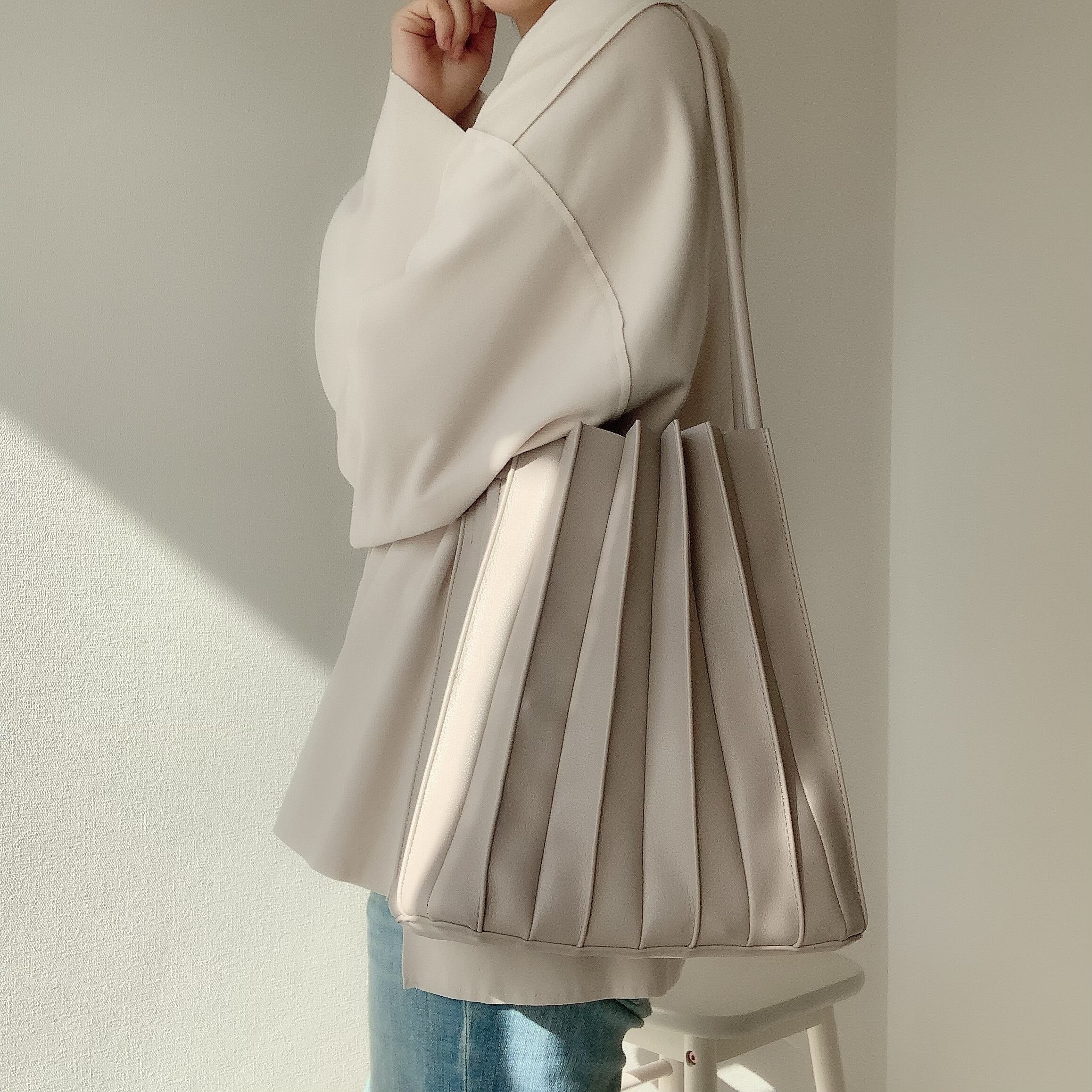 【完売】たっぷり入るのにコンパクト、毎日持ちたくなるプリーツバッグ(ベージュ)