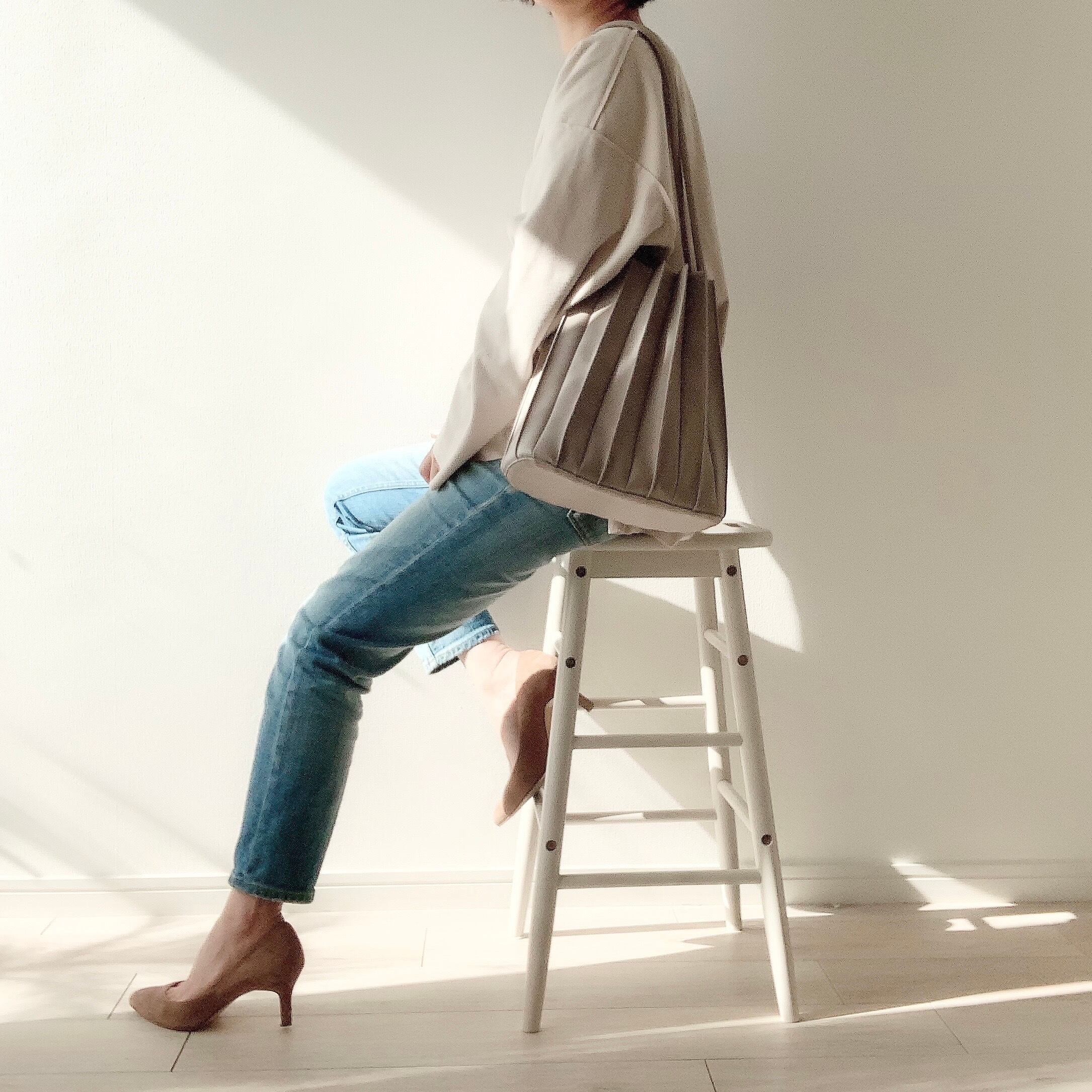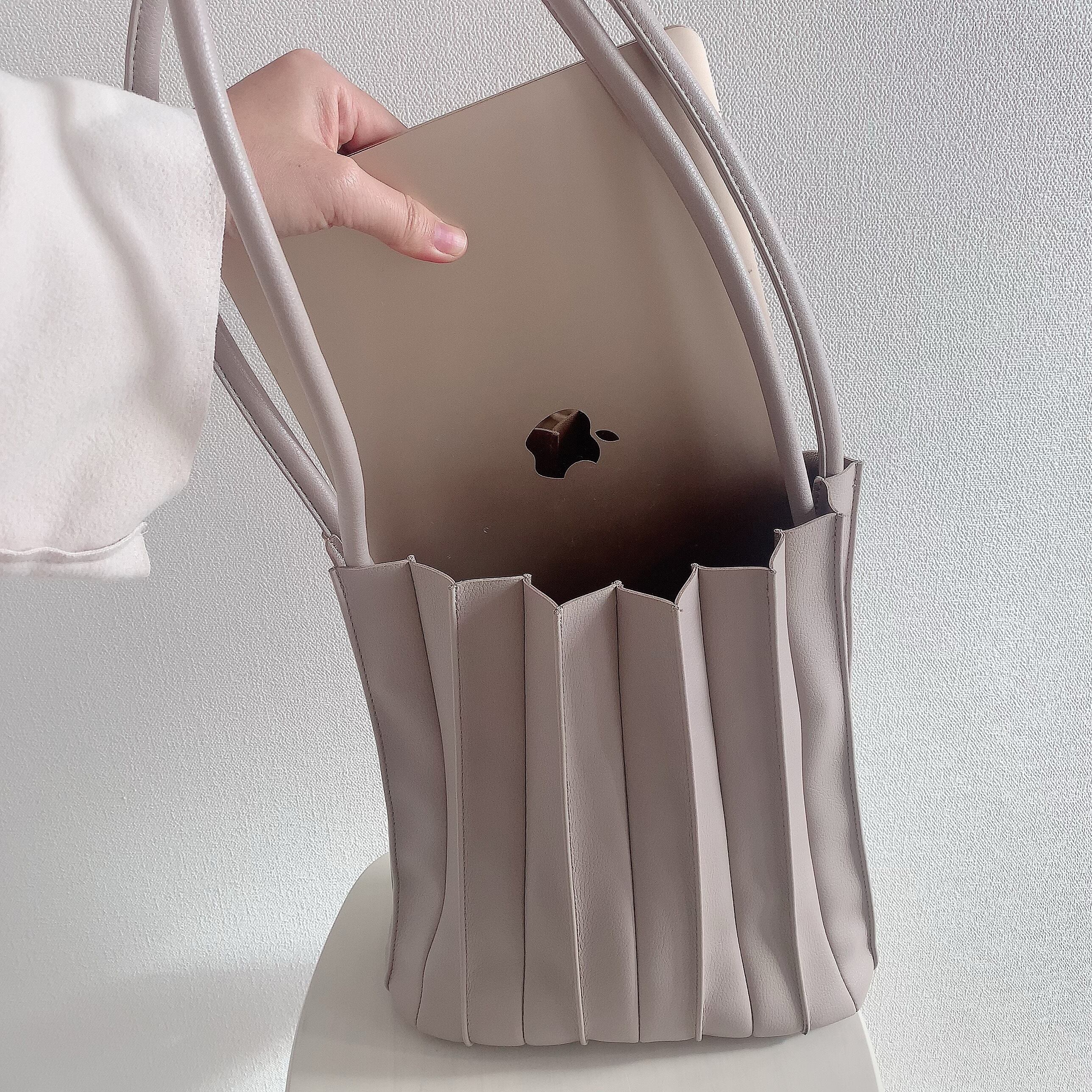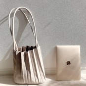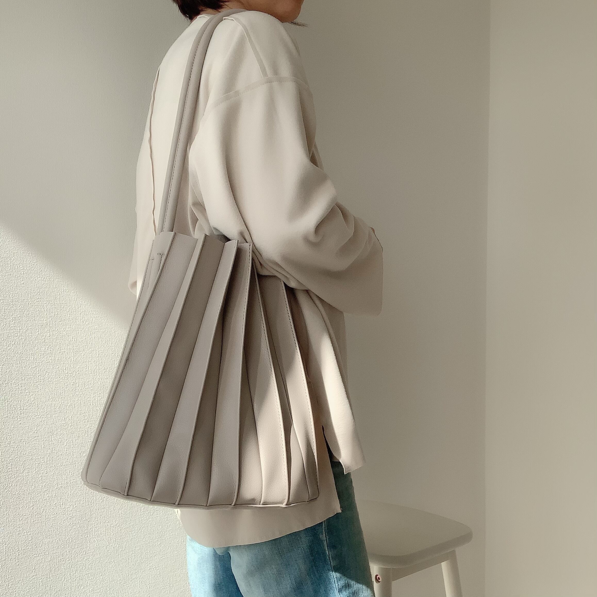 【完売】たっぷり入るのにコンパクト、毎日持ちたくなるプリーツバッグ(ベージュ)