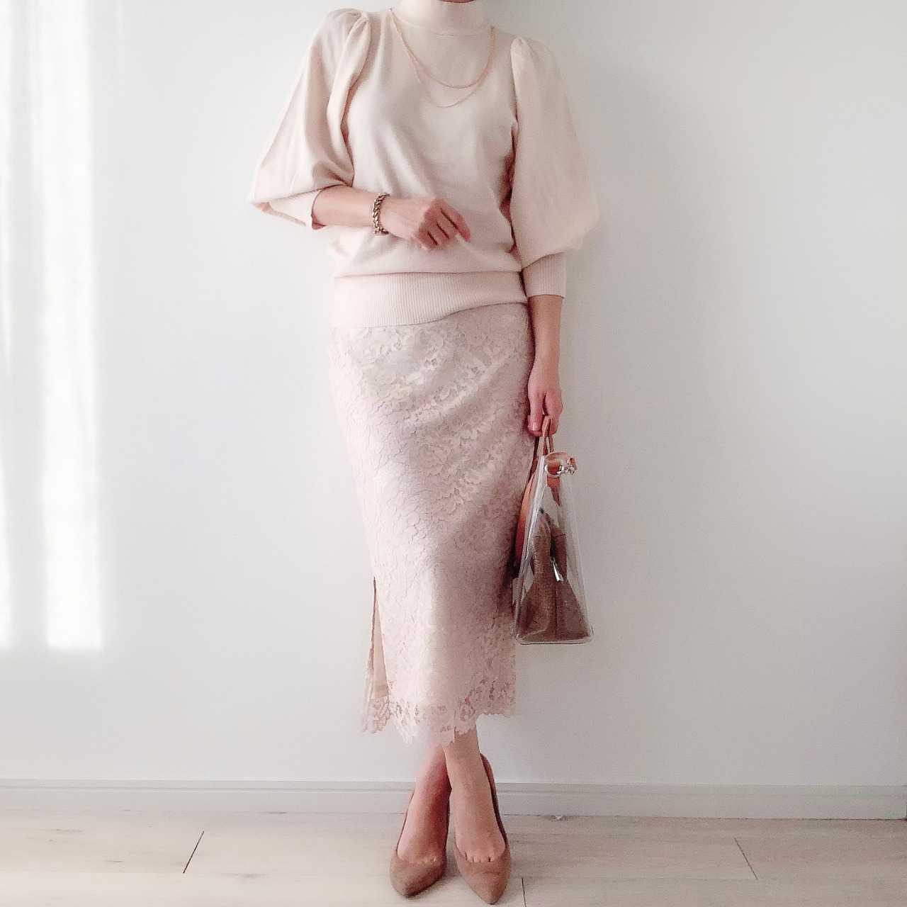 前シーズンまでに多く見受けられたレースのスカートたちよりも丈が長めなので、ふくらはぎが気になるかたも安心して楽しんでいただけるスカートです。