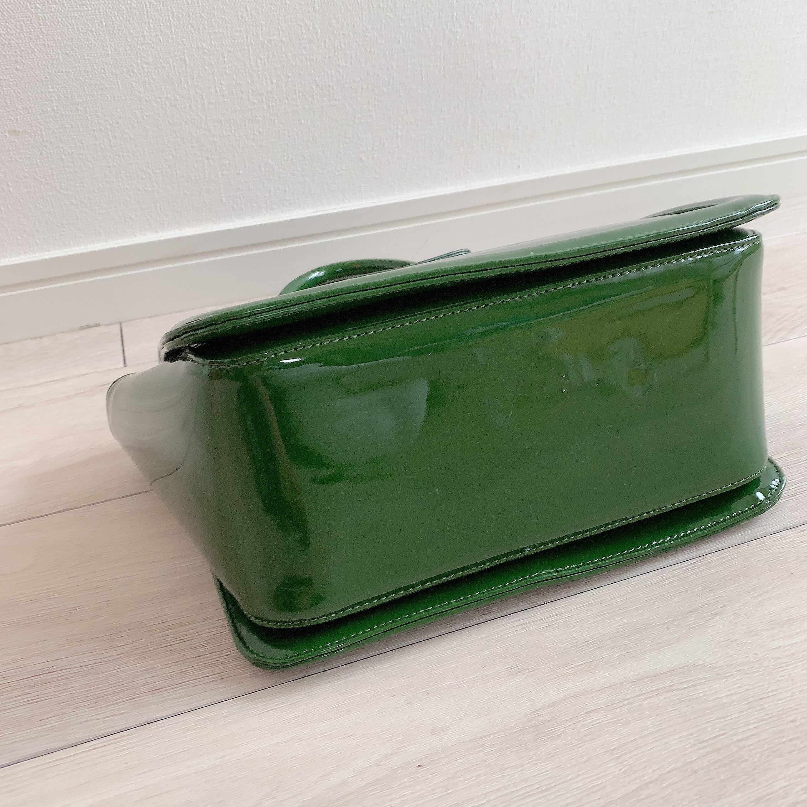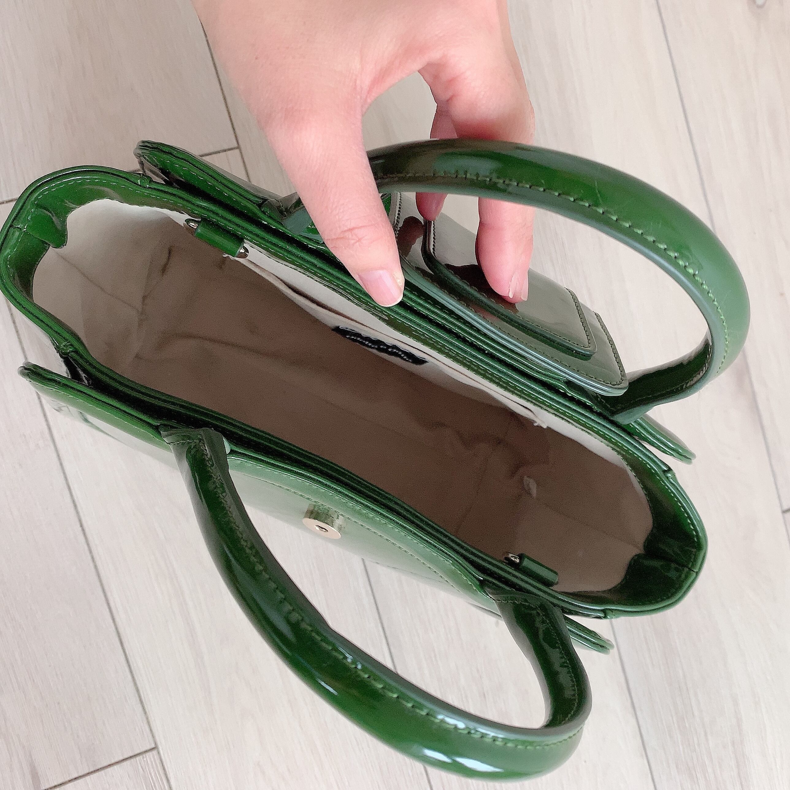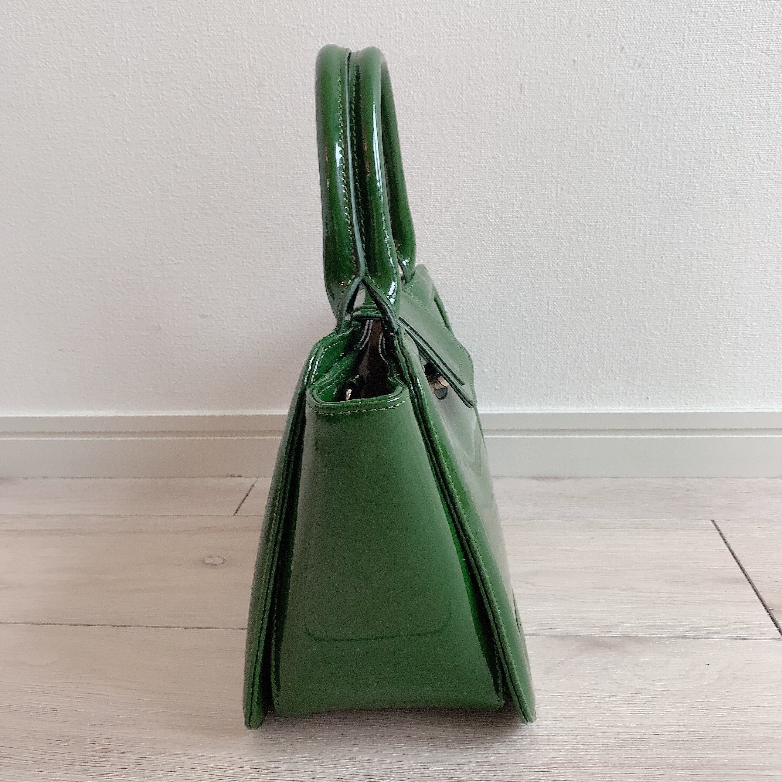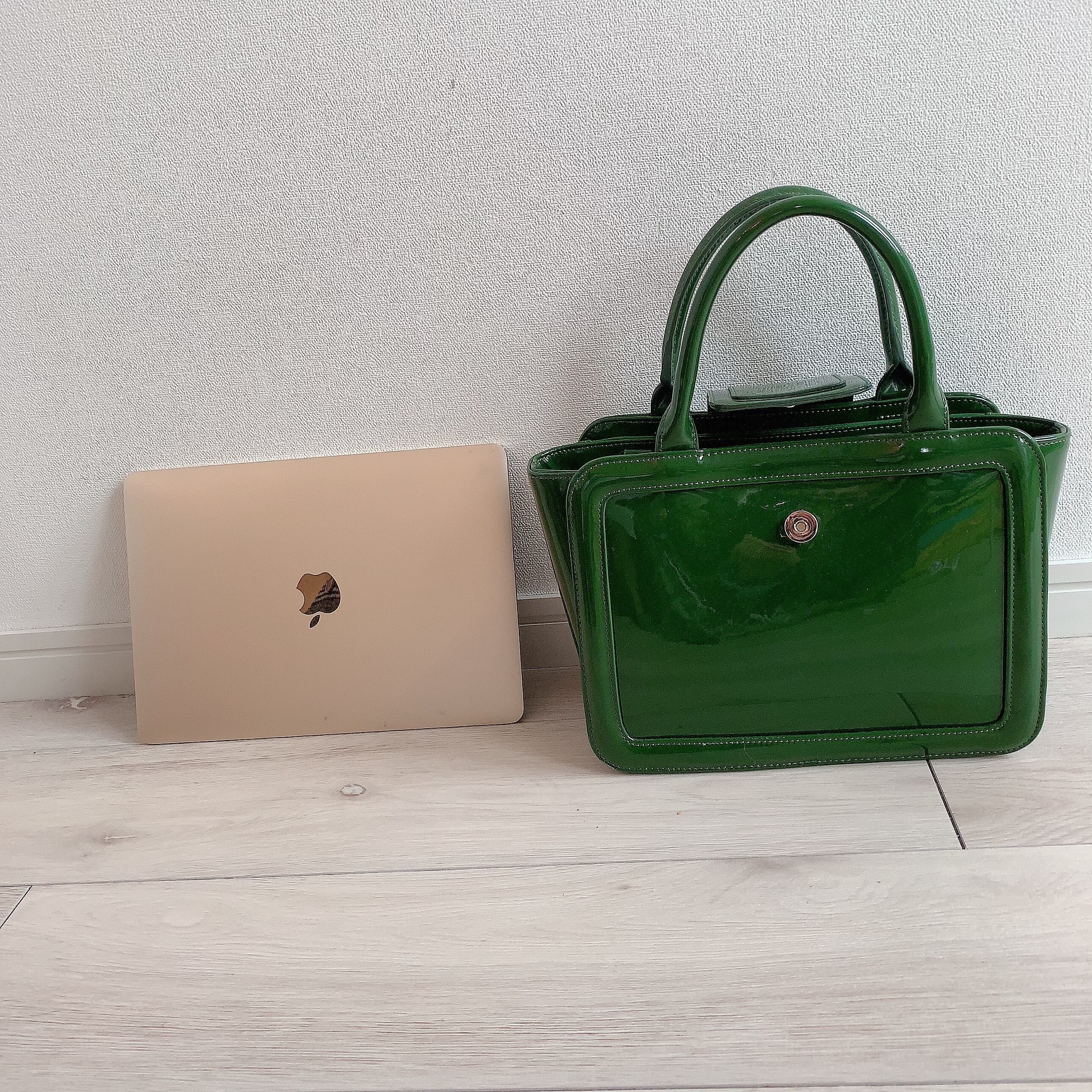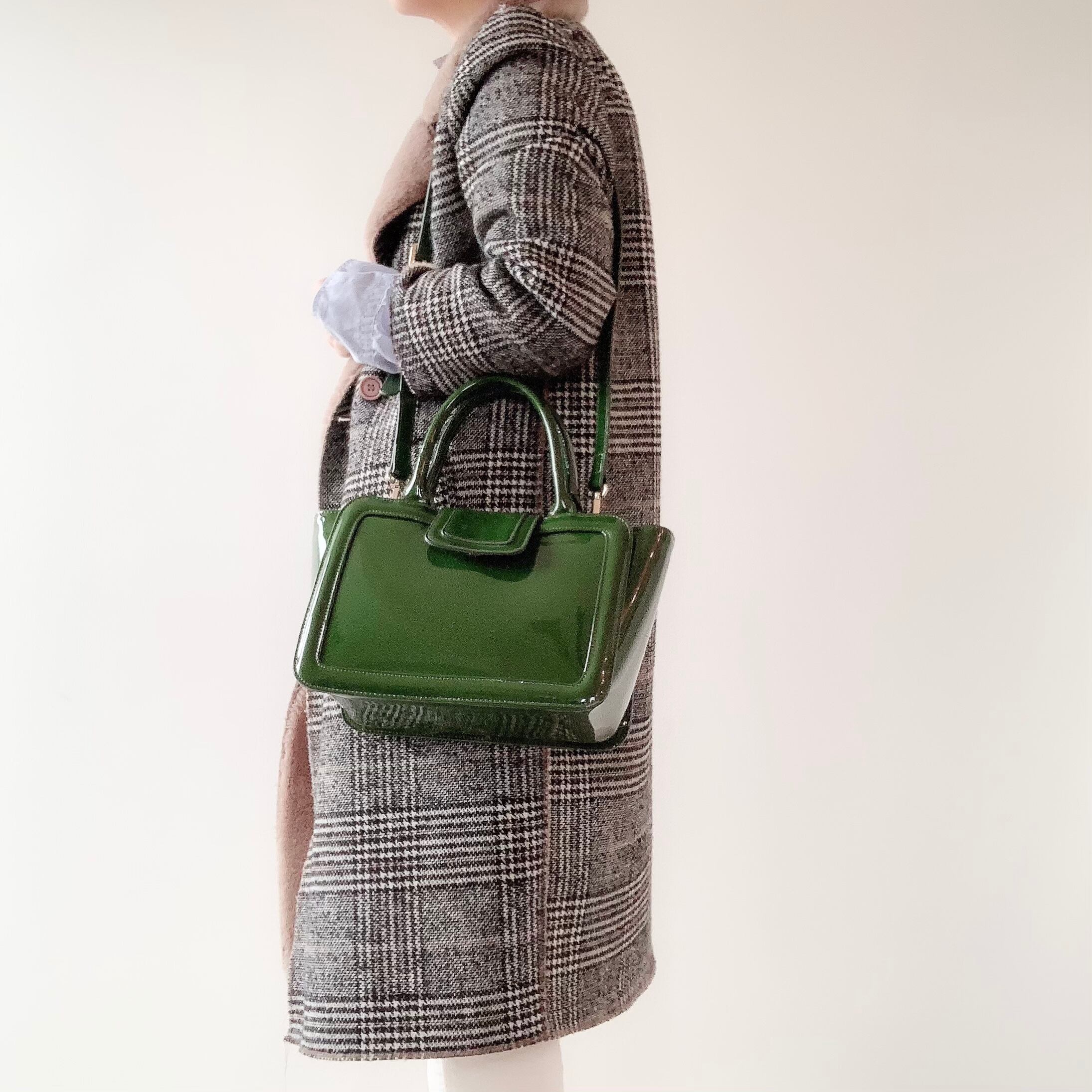 【完売しました】コンパクトなのに大容量、コーディネートの差し色になるグリーンの上品バッグ