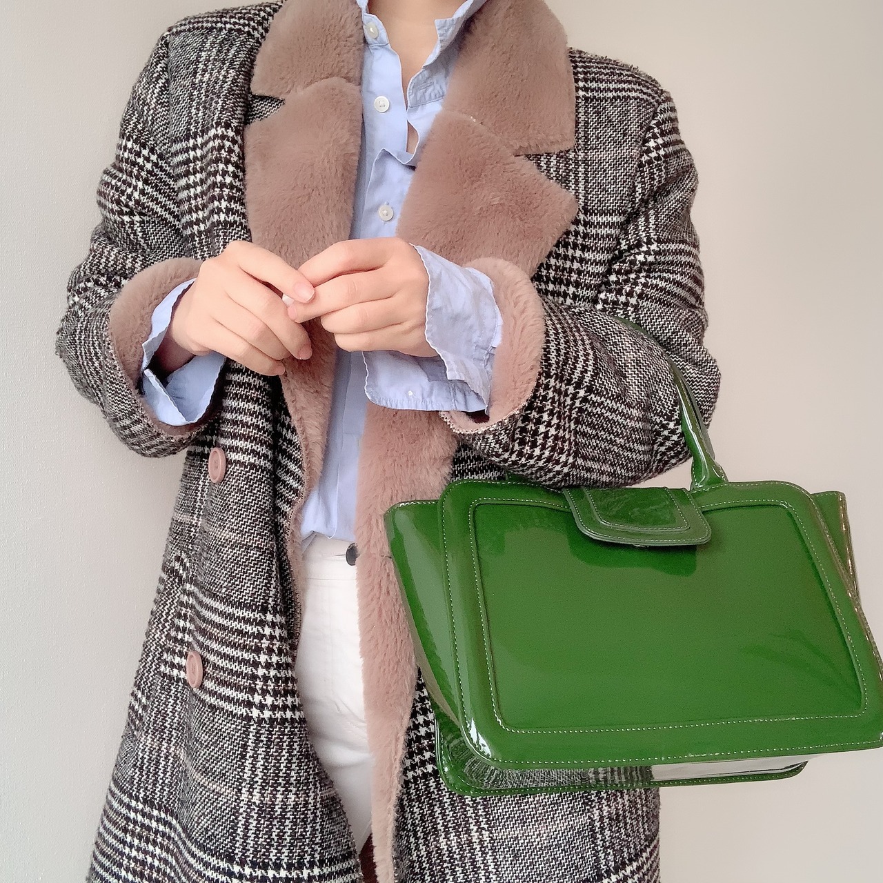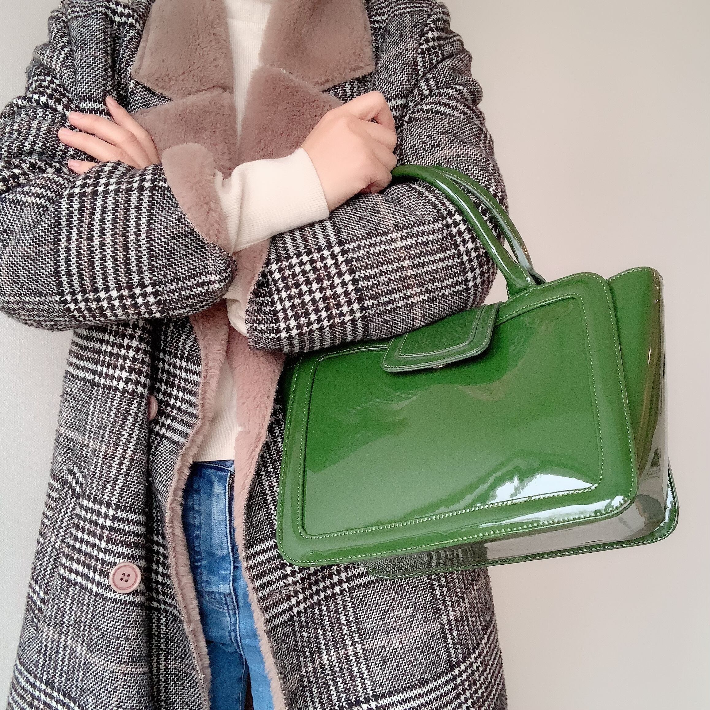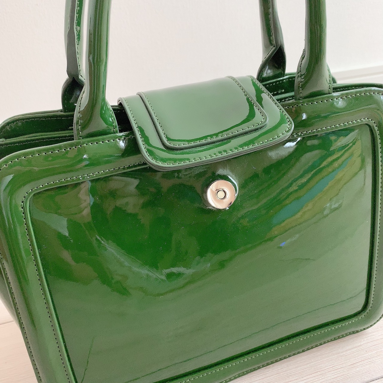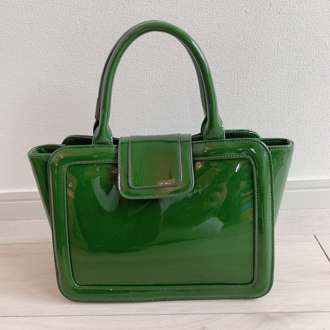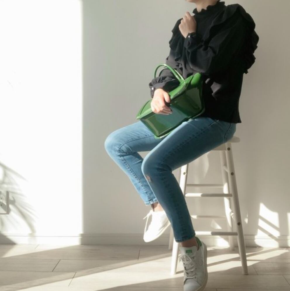 【完売しました】コンパクトなのに大容量、コーディネートの差し色になるグリーンの上品バッグ